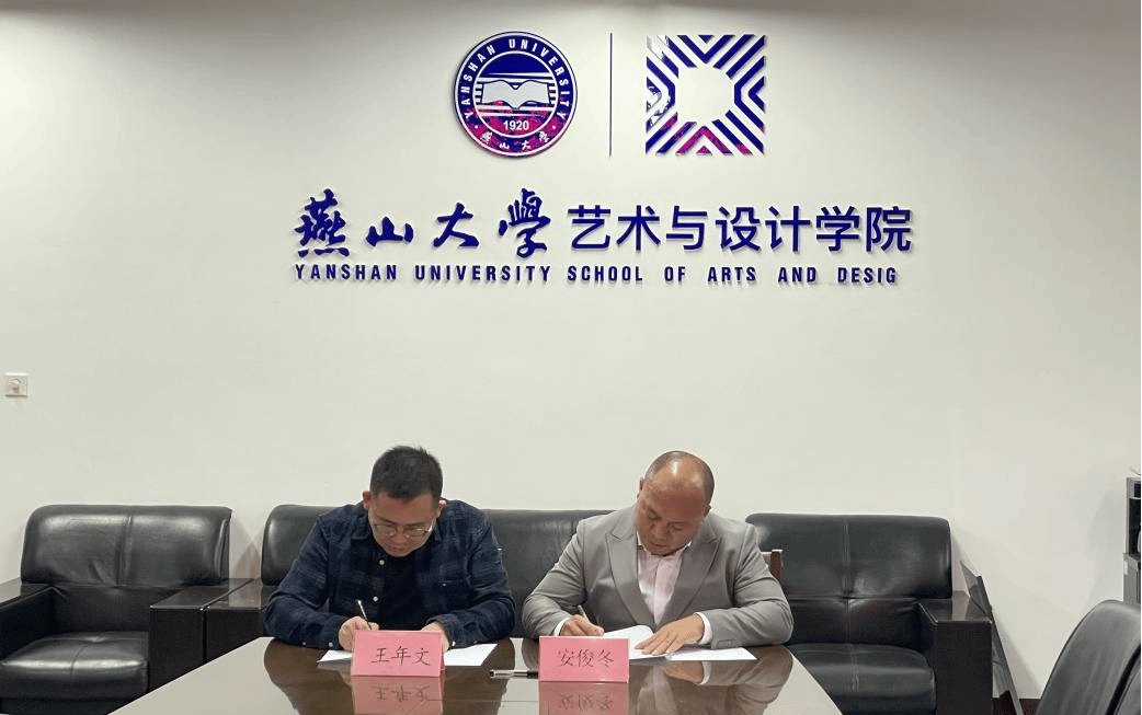 院长赵琳、副院长王年文及专业教师代表与山禾海文化传媒董事长安俊东一行共同参加签字仪式。