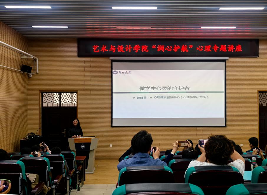 分工会组织的“润心护航——做学生心灵的守护者”心理育人专题讲座在音乐馆B105顺利举办。本次讲座特邀学校心理健康服务中心徐静英老师主讲,学院党委副书记宁岩鹏主持,全院教职工参加。