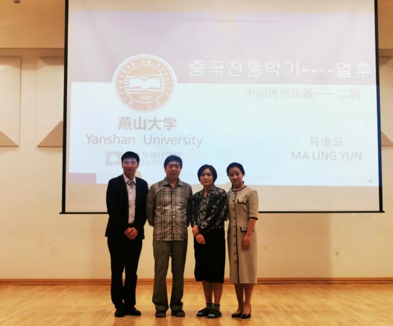 教师马凌云在韩国庆北大学艺术学院讲堂举办名为“中国传统乐器——二胡”的学术讲座,庆北大学艺术学院院长、副院长和国乐系系主任参加讲座。此次讲座是庆北大学国乐系开学的第一场国际交流学术讲座,讲座历时一个半小时,座无虚席。台下的老师和学生们专注聆听、积极互动,表现出对于中国民族乐器的浓厚兴趣。