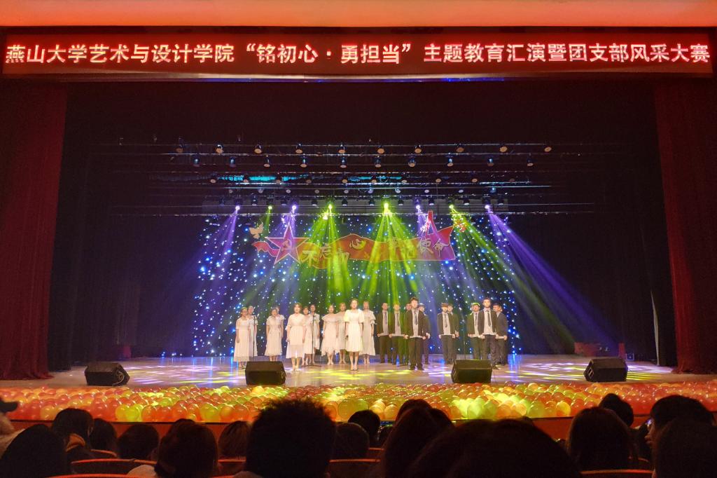本次活动紧密围绕“不忘初心、牢记使命”主题教育团支部活力提升工程要求展开。节目内容突出了基层团支部在思想道德建设取得的成效。如:以树立远大理想,把青春奋斗融入新时代为主题的《最初的梦想》、《相约2035》;以述说青春故事,尽展青春风采为线索的《燕大西区的日子》、《光阴的故事》等;以敢于担当作为,关心社会现实为主题的《你的模样》、《扰民了您》;以讴歌新时代,赞颂伟大的祖国为主题的《共贺明天》、《我和我的祖国》等节目受到同学们热烈欢迎。经过激励角逐,最后2019级环境设计1班团支部荣获一等奖。