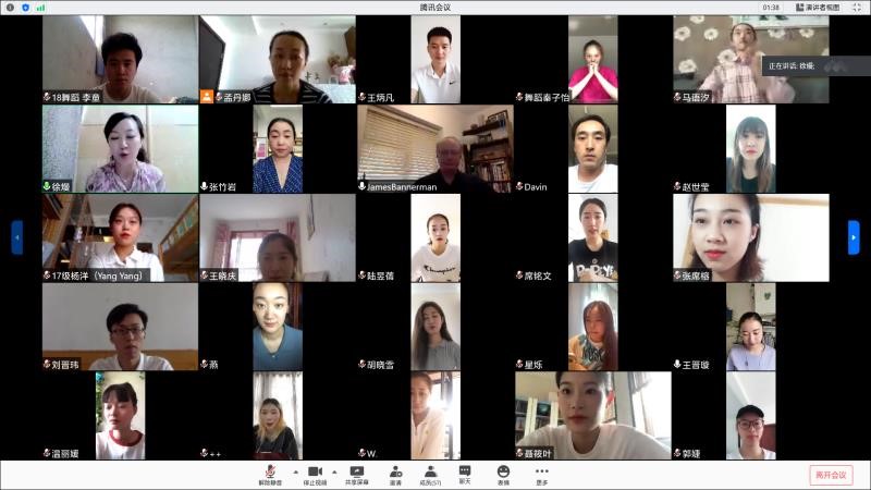 Christopher Bannerman教授首先向大家展示了英国四位著名编导的舞蹈作品,然后向师生详细介绍了当今英国舞蹈中多元融合的现象,并提出现代舞蹈没有界限的观点。舞蹈表演专业师生通过这次跨国界云端交流,提出国产无码