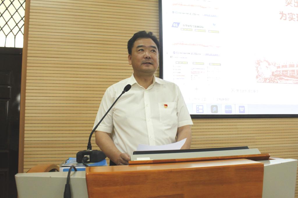 张文超最后指出,7月1日,校党委书记赵险峰同志到学院调研,对全体基层党员致以节日的问候,对学院工作给予充分肯定,这是给予我们的莫大鼓励,希望全体教职工承担起属于我们这代人的光荣使命,以新形象、新担当、新作为实现学院事业的新跨越!