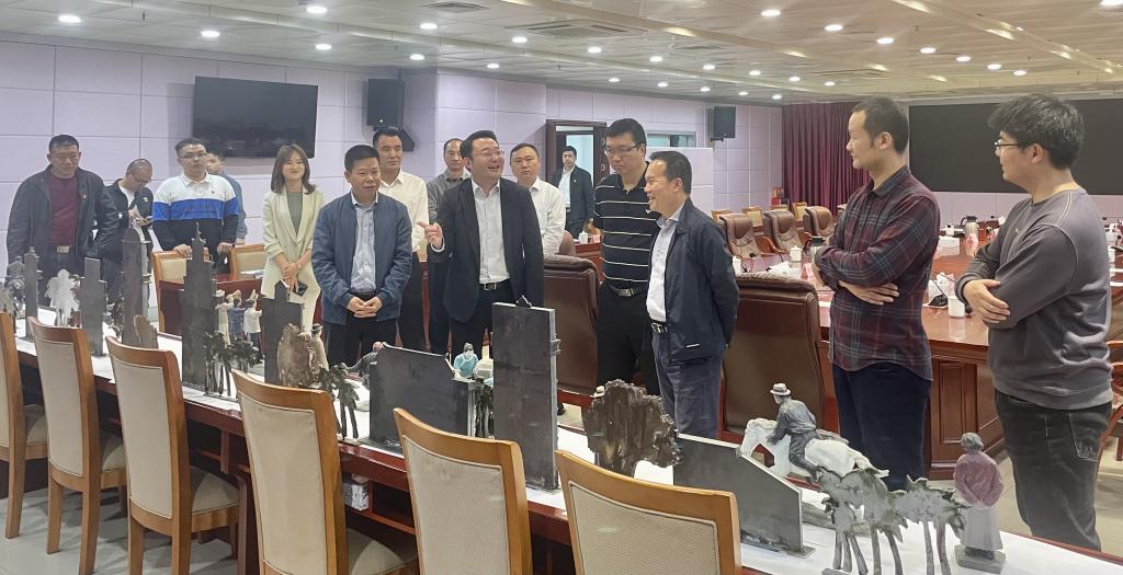雕塑系主任吴新,学院2007届校友、庄严智库理事、庄严建设董事局主席、太平洋建设首席运营官金亮在广东江门开平市人民政府拜会开平市市长马品高,双方就广东万里碧道开平碧道项目中景观雕塑方案部分进行交流。