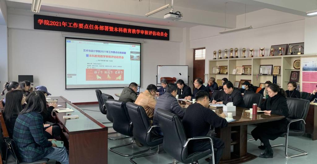 2021年工作要点任务部署暨本科教育教学审核评估动员会”,学院班子全体成员,科级干部,系部中心主任、副主任、教研秘书参加了现场会议,全体教职工线上参加会议,会议由孙利院长主持。