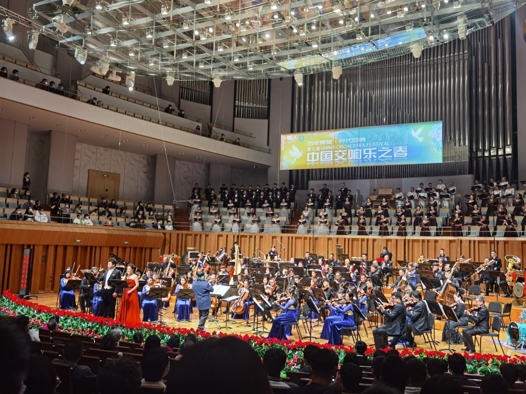 燕鸣合唱团首次亮相国家大剧院音乐厅,参加由著名指挥家汤沐海领衔广西交响乐团表演的“唱支山歌给党听”—《春暖花开》交响音乐会。齐颂百年辉煌,共赞时代回响,同学们用美妙的歌声展示了燕大学子的精神风貌。