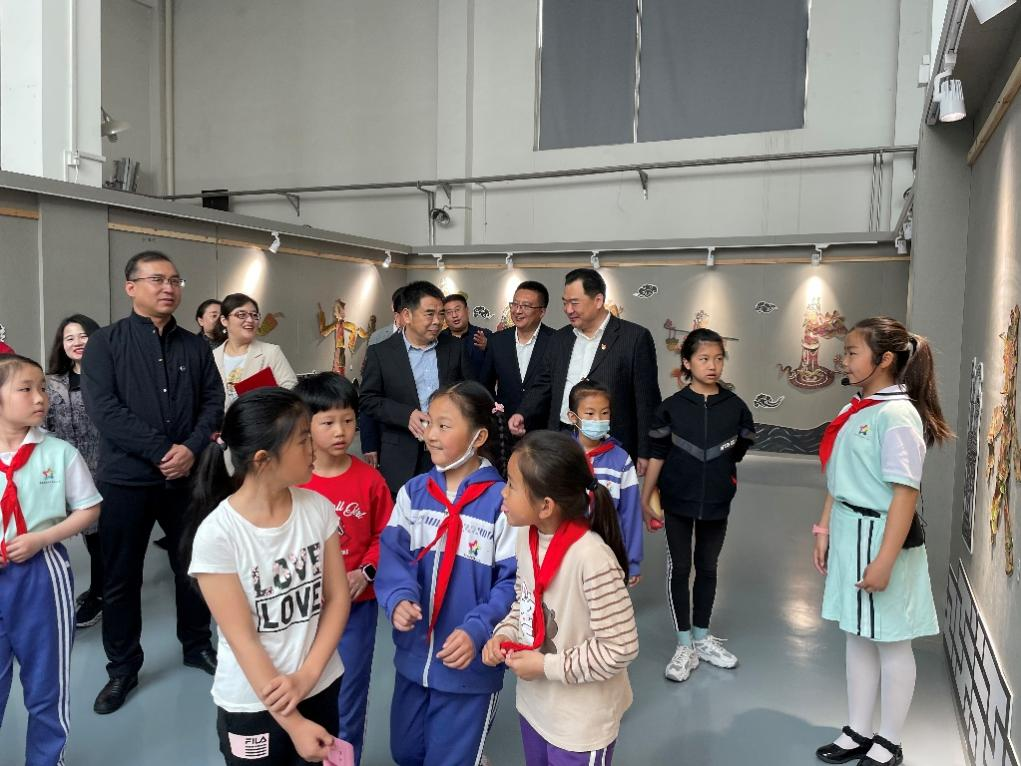 院长孙利与开发区第二小学校长王志鹏共同为中华优秀传统文化传承基地(篆刻)艺术进校园示范校揭牌