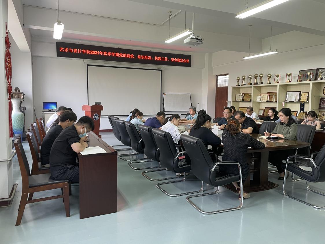 党委召开2021年秋季学期党的建设、意识形态、民族工作、安全稳定工作会议。会议由学院党委书记张文超主持。院长孙利,副院长张竹岩,副院长赵琳,副书记宁岩鹏以及学院师生党支部书记,各系部中心主任、副主任,科级秘书参加会议。