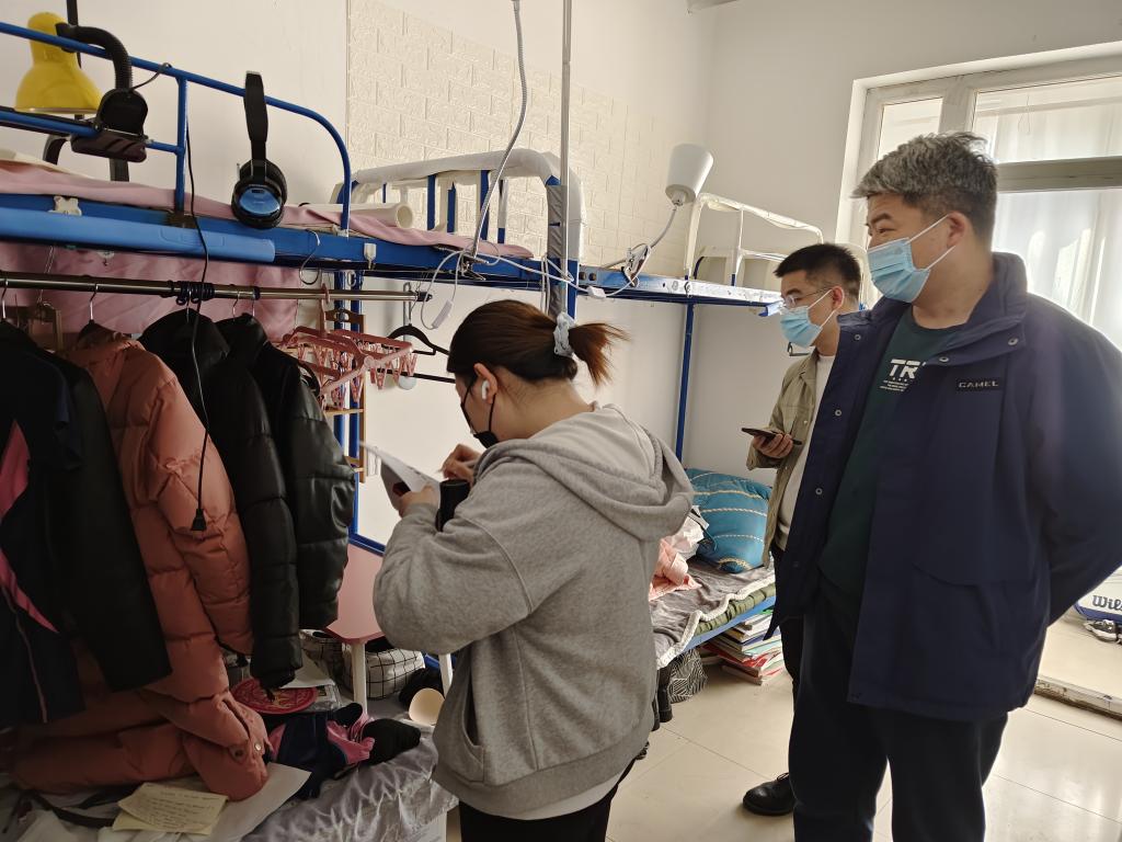 本次检查以寝室用电安全、消防安全为重点,检查人员进入每一间寝室,逐一检查。提醒同学们切勿使用高功率电器,注意保持安全通道畅通,了解必要的消防安全知识。对检查过程中发现的安全隐患问题进行了及时的纠正,对检查中发现的违规问题进行了严肃的批评和处理。检查过程中,辅导员老师还向同学们强调了疫情防控政策,就线上学习、校园活动与部分同学进行了沟通。
