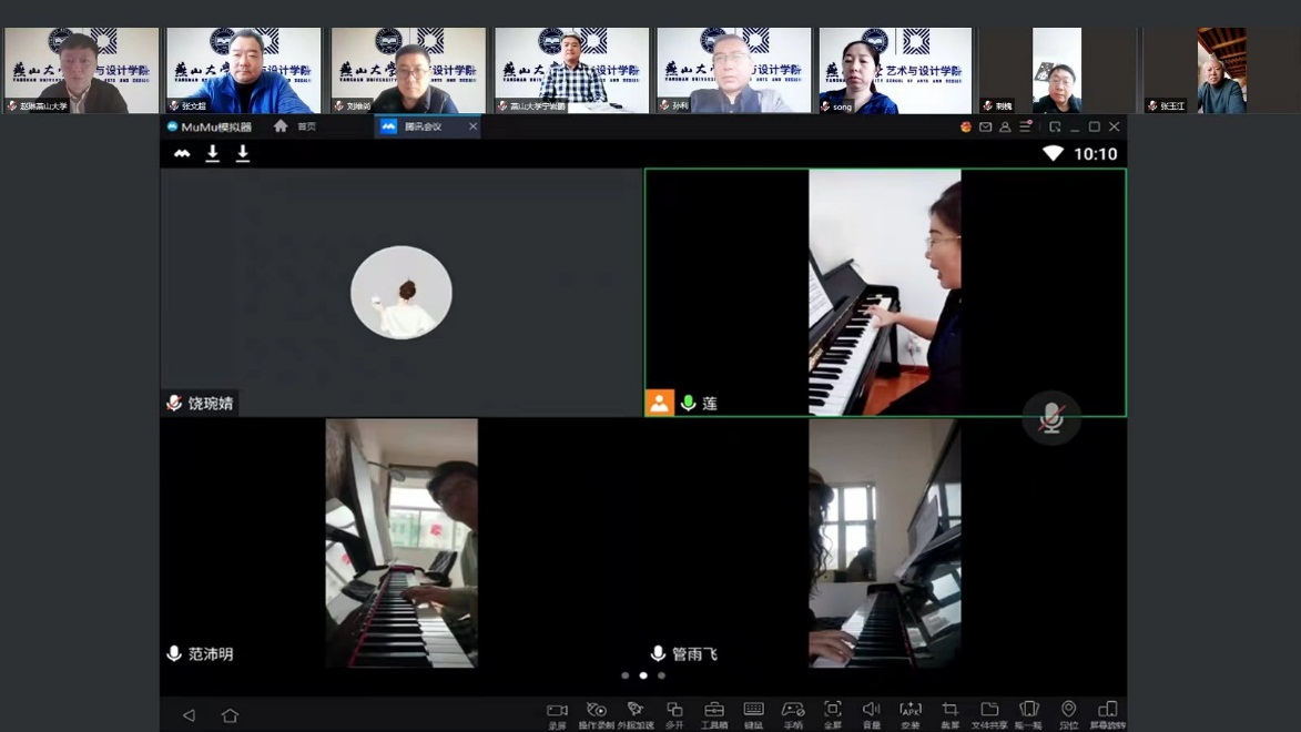开展集中线上教学专项检查.院长孙利、党委书记张文超、副院长赵琳、副院长刘维尚、党委副书记宁岩鹏等学院领导班子成员和学院督导组的督导深入课堂,开展线上听课督导活动,本次听课重点检查音乐系的在线教学工作,共旁听了声乐、钢琴、琵琶、二胡等4名教师的课堂教学和公共艺术系的毕业论文中期答辩检查。