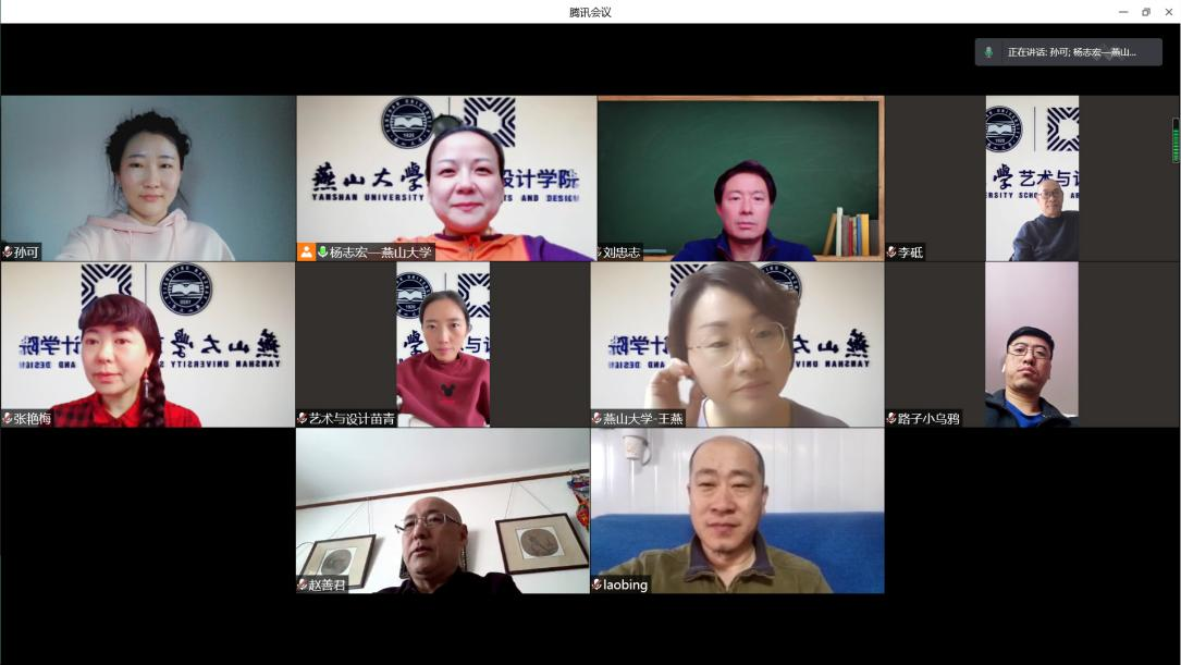 2022年春季学期的教研学活动线上有序进行,4月14日,公共艺术系组织了线上“课程思政”研讨活动,全系教师积极参与,活动由系主任杨志宏主持。