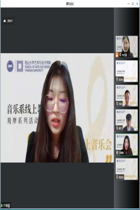 音乐会结束之后,与会老师们发表了感受。潘雅清老师认为:“看了整场的学生们演奏都很好,我觉得心灵上很触动。接下来我们运用有线上展开音乐活动,希望大家更加努力完善自己。”孙英老师指出,多次走台加上这一次正式汇报,能看得出同学们真的是非常努力。首先态度上就很端正,很重视汇报,我和金老师能明显的感受到每位同学每一次的进步。还有互助友爱精神也很感动。赵悦老师祝贺同学们,鼓励同学们今天在线上音乐会表现的非常非常棒。金红莲老师指出,第一次钢琴课程思政音乐会圆满成功,钢琴专业老师和同学们共同努力是密不可分的,红色经典钢琴音乐演奏的同学和与会聆听音乐会的同学们对红色音乐产生了认知、认可、认同与共振。