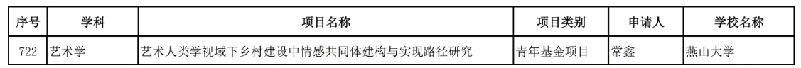 常鑫博士主持申报的项目“艺术人类学视域下乡村建设中情感共同体建构与实现路径研究”课题获批艺术学青年基金项目。