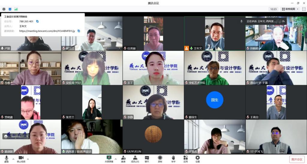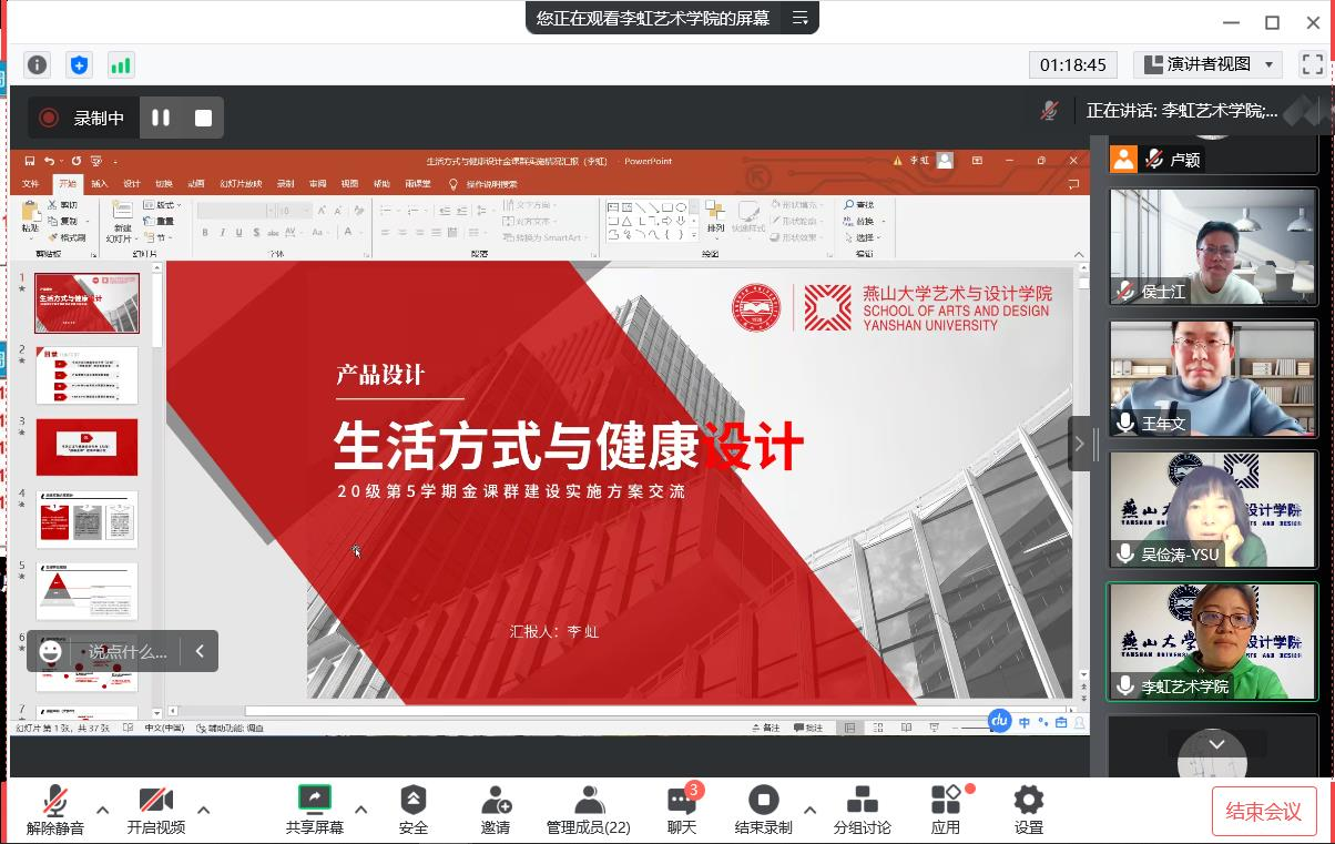 “培养什么人,如何培养人”是教育的根本问题。工业设计系的两个专业工业设计专业和产品专业,作为国家“双一流专业”建设点,为深入推进教学研究与现代信息技术的深度融合,有序推动教学改革与教学模式创新,提升人才培养质量,2022年10月13日,工业设计系的进行了“金课群”课程建设教学研讨会,会议基于腾讯会议,采用线上方式举行。