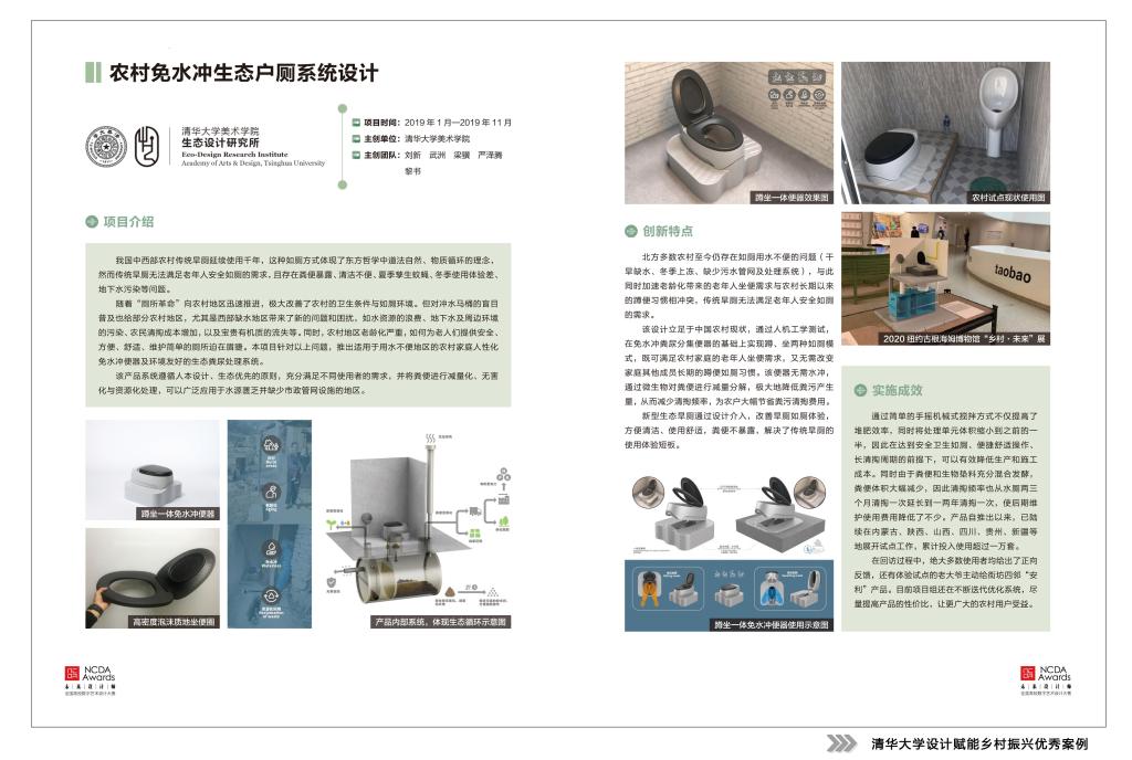 在刚刚结束的2022第十届未来设计师·全国高校数字艺术设计大赛中,主办方征集到一万余件以乡村振兴为主题的设计作品,涌现了一大批为乡村做设计的志愿者。作为“我为乡村做设计”另一项主题活动,“全国高校设计赋能乡村振兴创新案例”征集活动也得到了高校的的积极响应,共收到近500个申报案例。优秀实践案例不断涌现,,如清华大学美术学院生态设计研究所刘新教授针对中西部传统农村旱厕存在的诸多问题,设计出适用于用水不便地区的农村家庭人性化免水冲便器及环境友好的生态粪尿处理系统,可广泛应用于水源匮乏并缺少市政管网设施的地区。来自重庆交通大学建筑与城市规划学院的多个教师团队近几年已走出设计赋能乡村振兴的特色之路,如董莉莉院长团队和姚阳老师团队分别对重庆市江津区中山古镇进行了抢救性修缮规划设计,对重庆市万盛经开区丛林镇绿水村开展了乡村艺术系列活动策划等。经主办方和专家评审,从中精选140个案例汇编成册,由上海交通大学出版社正式出版《设计的力量——全国高校设计赋能乡村振兴创新案例》一书,向社会各界展示高校设计教学创新与大学师生以创意助力乡村振兴的成果。