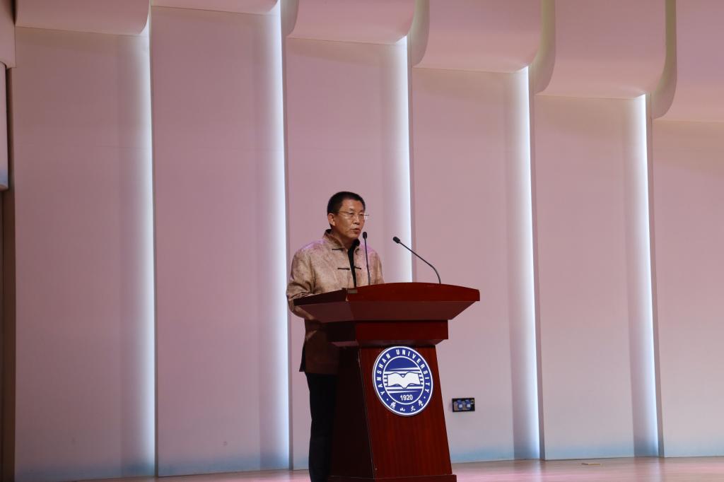 “古韵新声艺术团”团长孙贵良在致辞中表达对学院热情接待的感谢,他指出冀东民歌是冀东人民的,更是燕赵大地的,希望通过本场演出,能够对在场观众予以启发,能够取得在高校传播优秀区域音乐文化的效果。