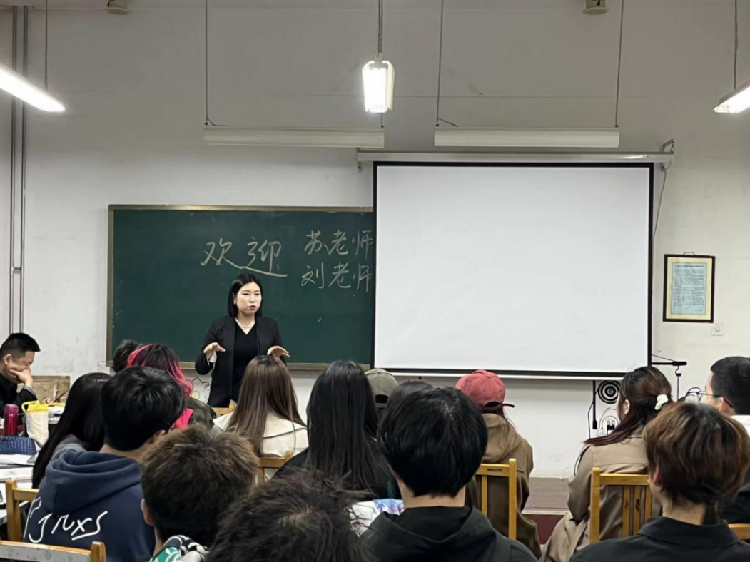 杰出校友代表,校友导师苏红、刘泉恒在美术馆A206与学院2022级设计学类7班、8班同学们进行交流。