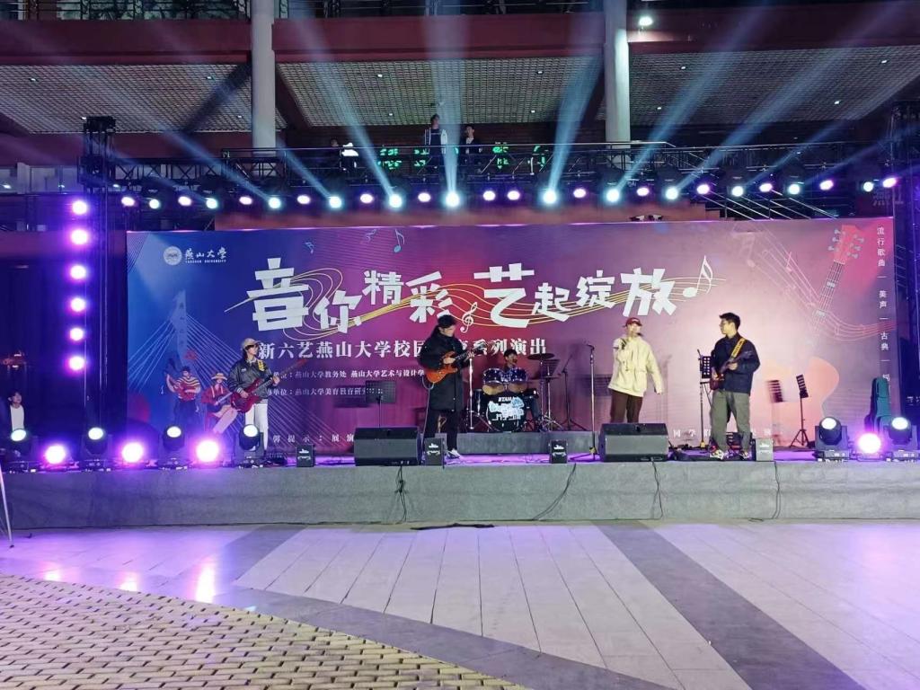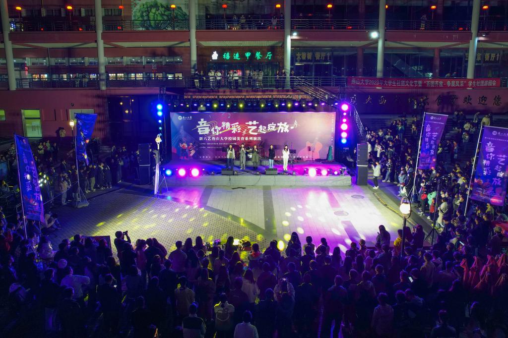 西区食堂广场拉开帷幕。此次音乐会是由宋军老师讲授的《音乐实践-阿卡贝拉音乐团队》《音乐实践-流行乐器组合体验》《音乐实践-视唱练耳》美育通识课的同学联合表演的,参加演出的学生涵盖了我校各个学院的非专业学生。整场三十余首作品的创作、编排等每个环节全部由学生参与完成。同学们用音乐的方式尝试团队协作,完成电声乐队的配器调音、组合演唱的声部平衡、唱跳风格的舞蹈编导,收获了友谊,展现了勇于创新、朝气蓬勃的青春风采。台上与台下积极互动,在《我爱你中国》的合唱曲中,历时2个半小时的音乐会圆满结束。