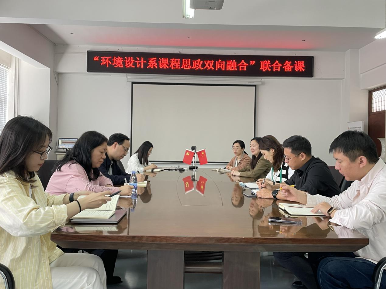 环境设计系联合马克思学院在美术馆305开展课程思政与思政课程“双向融合”联合备课教研活动,环境设计系专业教师和马克思主义学院沈德昌、张丽华两位老师参加了此次教研座谈活动,活动由环境设计系主任温瑀主持。