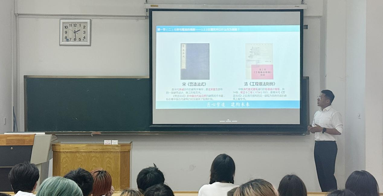 课程的内容由两部分构成。理论部分,通过对中国古建筑形制与结构的讲解,向学生传递中国古建营造中的智慧,为“知行合一”中的“知”;实验部分,通过实物实验、虚拟仿真实验、项目设计实验,将营造智慧与工匠精神进行反映在实操实践的环节中,为“知行合一”中的“行”。以此贯彻“理论与实践并重、创新与思政并行”的教学方针,践行“知行合一育人才,匠心共筑中国梦”的育人理念。
