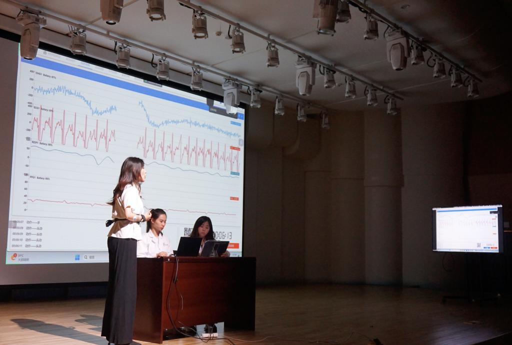 首次打破音乐与科学融合的新领域,成功举办“音工交叉科研实证音乐会”。在实证音乐会演出过程中,采用ErgoLAB人因生理记录仪进行实时、准确地记录,并将生理数据实时通过大屏幕呈示给现场观众。借助生物反馈技术和数据可视化的形式,表演者被试杨丹将自己的生理信号转变为音乐会中独特的元素,并与音乐表演进行实时融合,调节其的心理、行为及表演。研究人员还针对表演者制定了为期一周的生物反馈训练,于同一地点举办对照组可以有效验证生物反馈在音乐表演中的实际效应量。