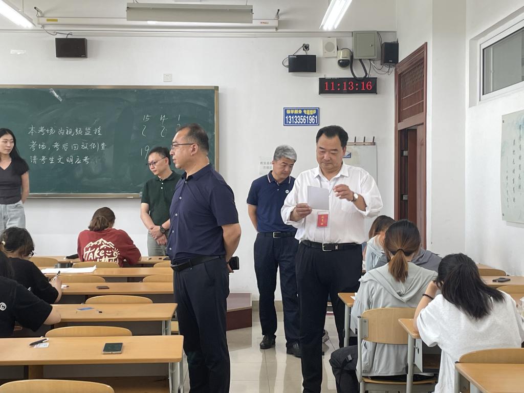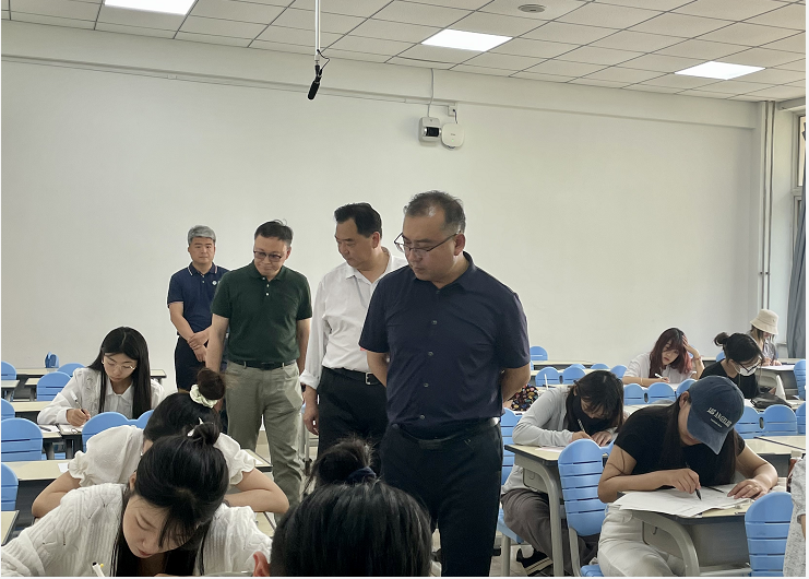 党委书记张文超、院长孙利、教学副院长赵琳,副书记宁岩鹏带领学院综合办公室、学生工作办公室深入学院学生所属考场,现场督查监考老师到岗情况、学生考场纪律。