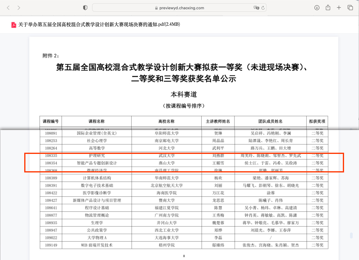工业设计系王媚雪老师主讲的《智能产品专题创新设计》课程,代表学校夺得全国二等奖,是我校在这项赛事上的新突破。