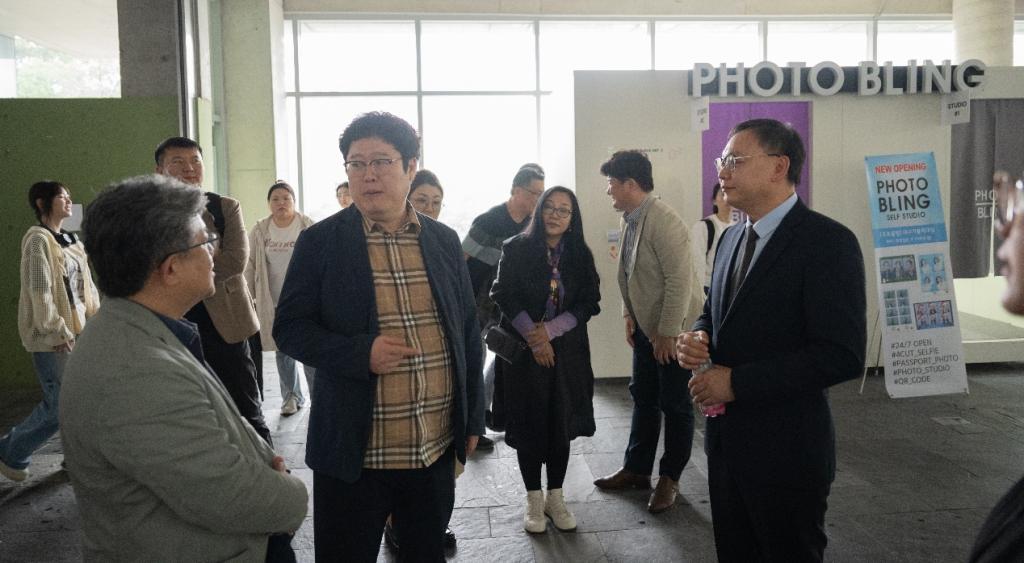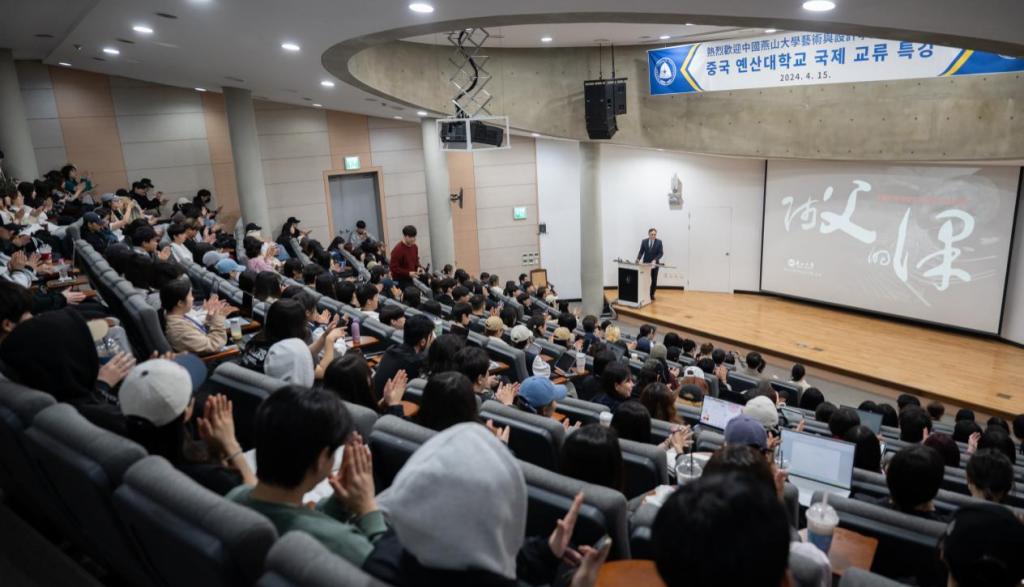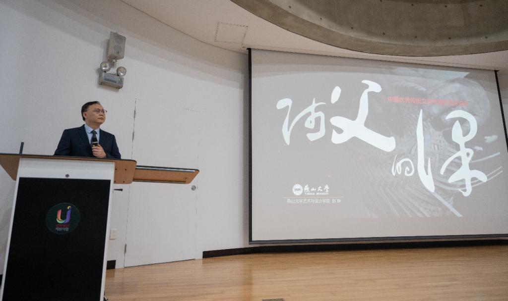 院长赵琳、副院长刘维尚带队,赴韩国开展了系列学术交流活动。4月15日下午,应加图立大学邀请,赵琳院长做题为《师父的课:中国传统优秀文化与现代艺术设计》专题报告。报告由加图立大学社会科学学院闽炳云教授主持,社会科学学院院长南宗勋教授、广告传播系主任张泽元教授、设计学院院长梁禎恩教授、音乐学院金瑾弘教授及300余名师生参加了此次专题报告,李京美老师担任报告翻译。