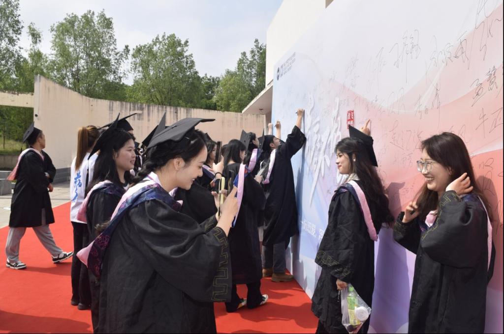 在充满激情的《大学生之歌》旋律中,学院院长赵琳及各系主任为每一位毕业生拨穗正冠,与他们合影留念,共同庆祝这一重要时刻。毕业生们登台向老师表达深深的敬意与感谢,感谢学院的辛勤培养。