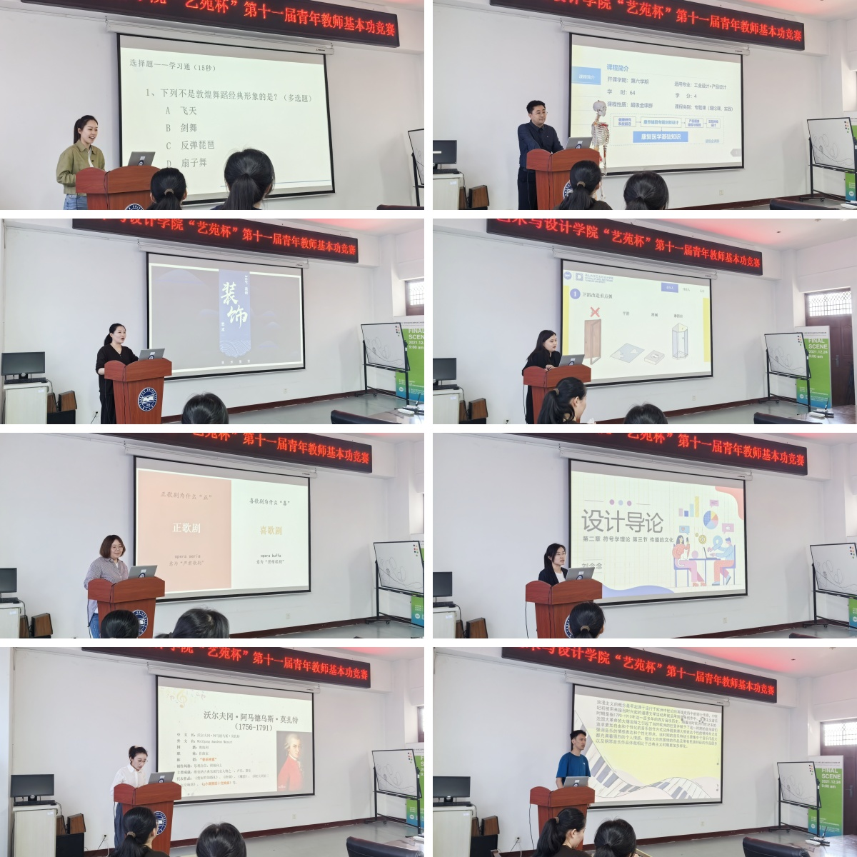 经过激烈角逐,最终工业设计系于鸿飞老师荣获本次竞赛第一名,并推荐代表学院参加校级竞赛。王年文副院长最后总结对青年教师提出了几点要求:一是青年教师要加强师德师风建设,要有扎实的教学功底和教学能力,积极探索新时代教育教学方法;二是青年教师要以更加饱满的热情和务实的作风,主动担当作为,以良好的状态完成审核评估的工作;三是希望青年教师不忘初心,牢记育人育才使命,不断提升教书育人能力。