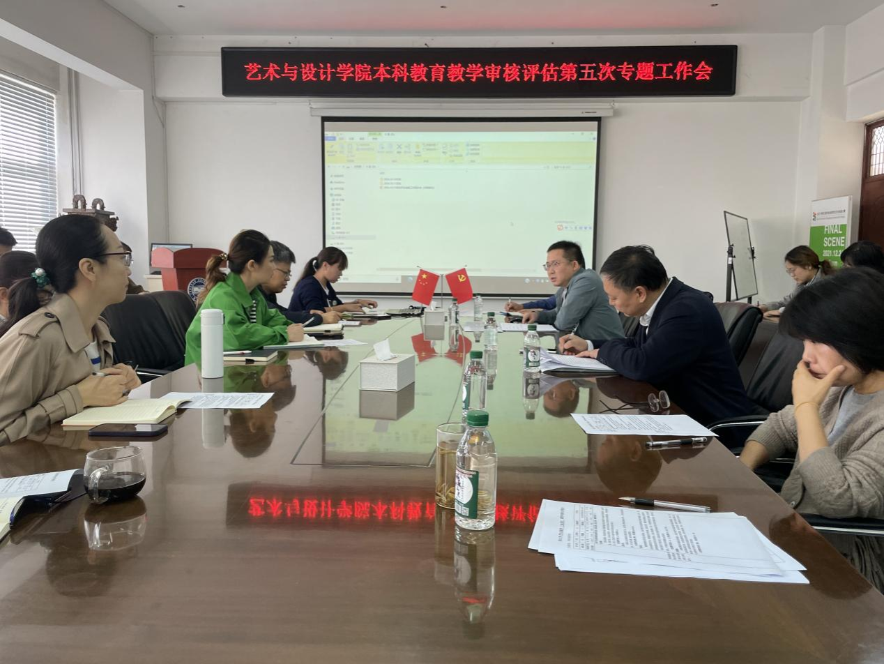 为高质量完成本科教育教学审核评估各项工作,以最佳状态全力迎接教育部审核评估专家组的评估指导,扎实有效推进学院审核评估迎评各项工作,学院10月11日上午,在美术馆C305召开本科教育教学审核评估第五次工作会议,院长赵琳、副院长王年文、各系部主任、副主任、教研秘书、综合办公室工作人员参加会议,会议由王年文主持。