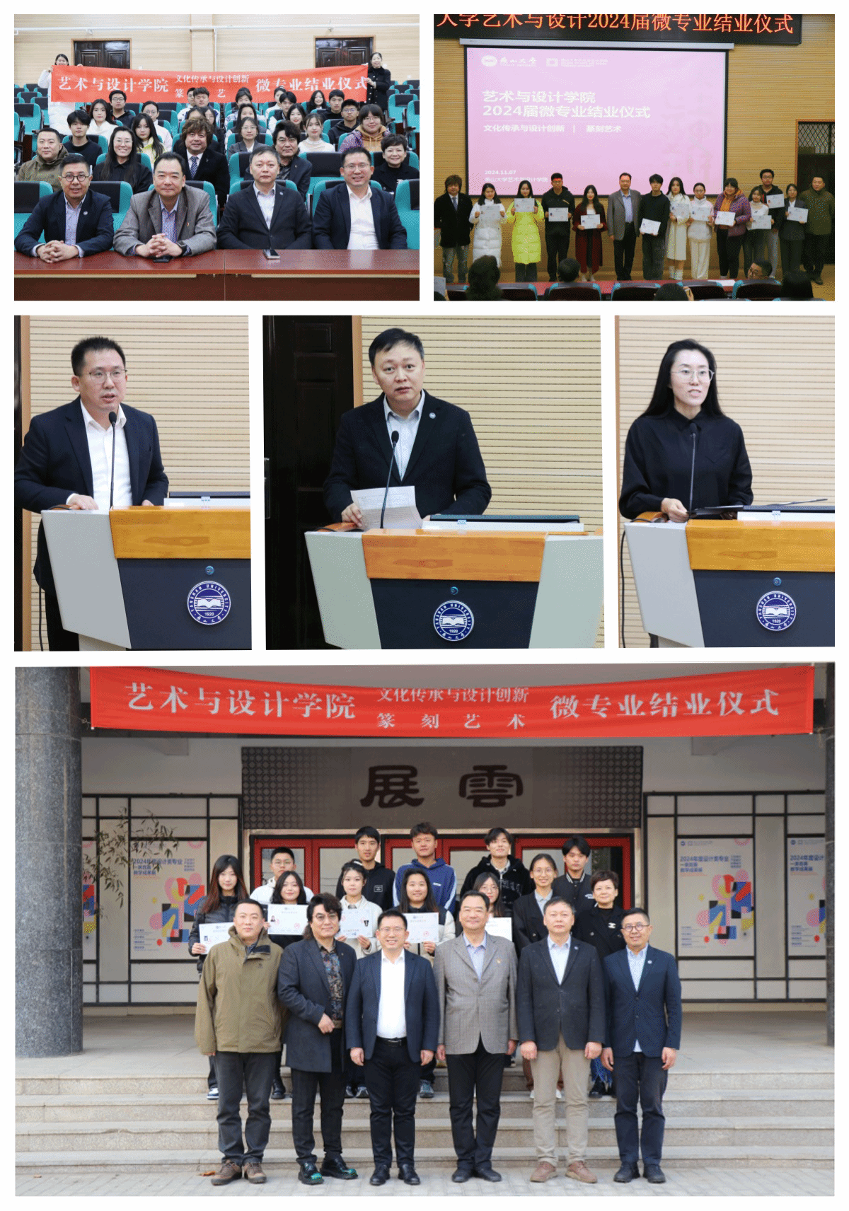 “文化传承与设计创新”、“篆刻艺术”微专业学生结业文件。张文超、刘维尚和微专业教师代表为两个微专业学生现场颁发了证书。