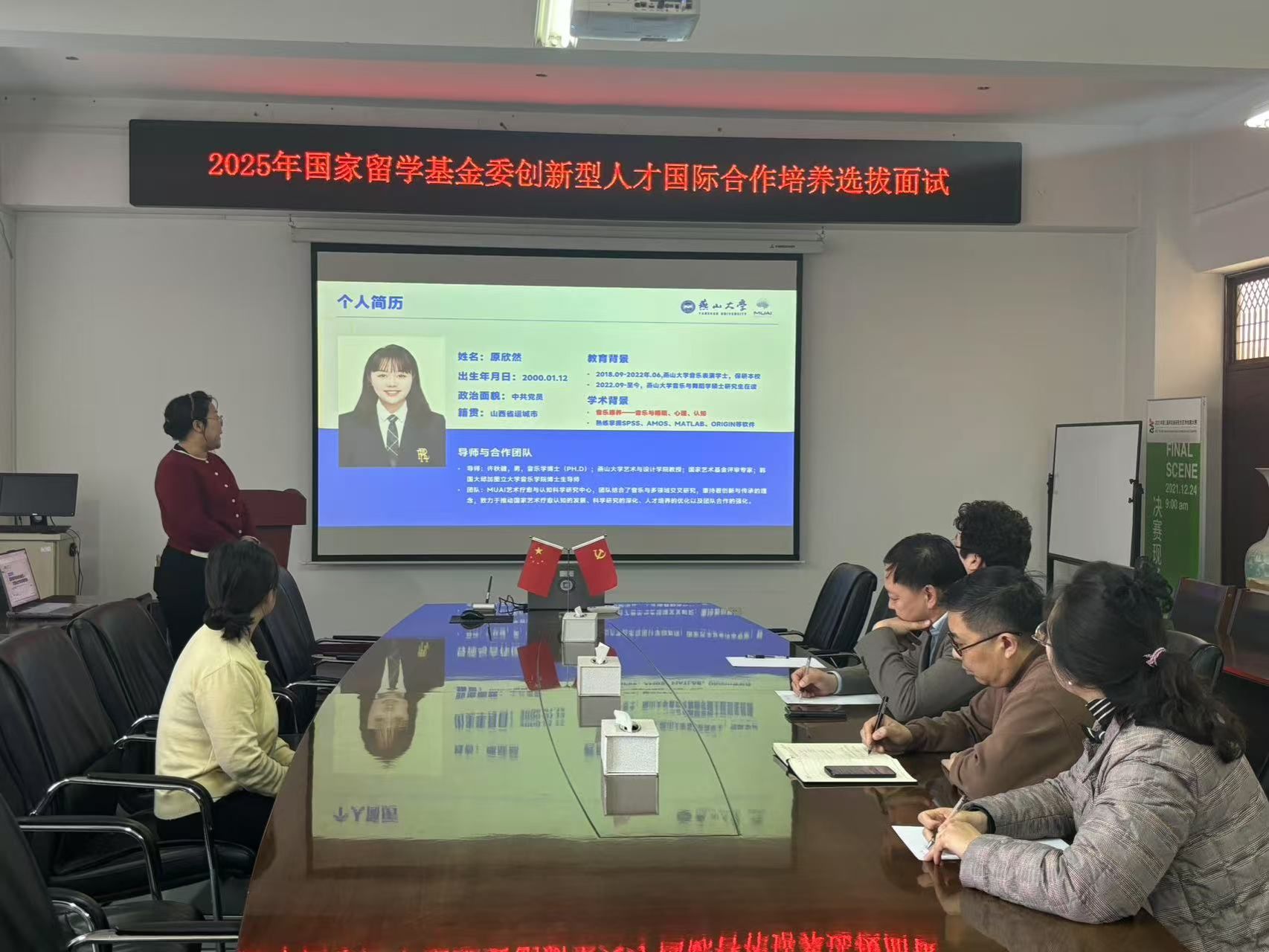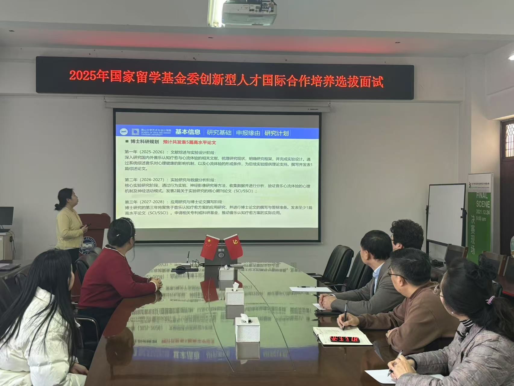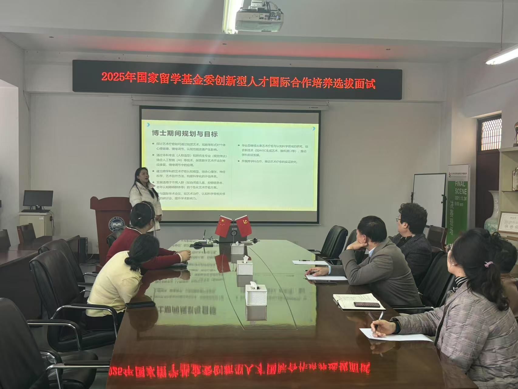 本次选拔面试主要针对艺术疗愈领域中学术能力突出、创新精神强、具备国际视野的优秀学生。学院严格按照国家留学基金委的要求,组建了面试专家组。专家组由院长赵琳教授担任组长,副院长刘维尚教授、许秋健教授及外籍专家李京美教授共同组成。