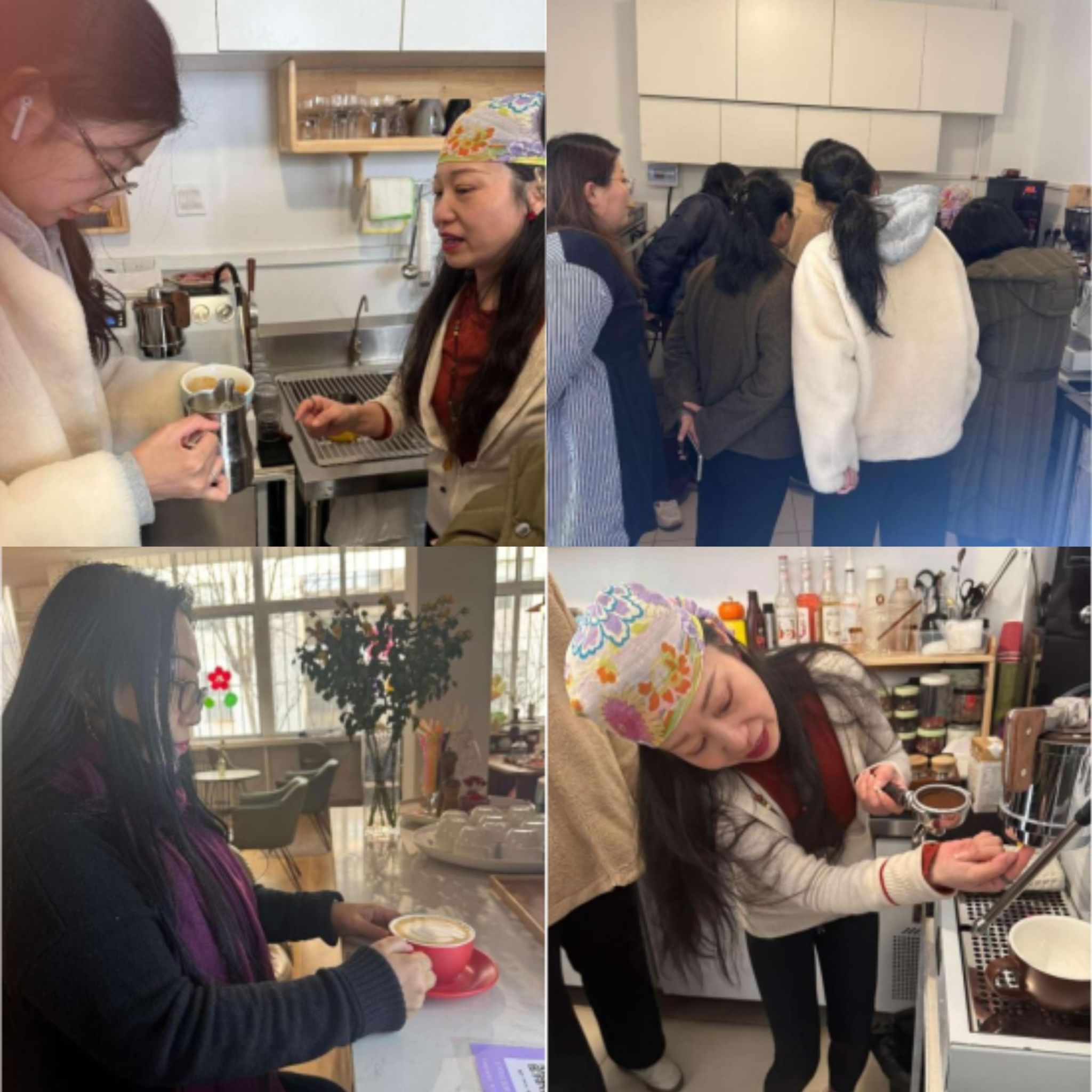 活动现场布置雅致,咖啡的香气与美术馆的艺术气息交织。学院特邀专业咖啡师为女教职工们讲解咖啡的文化历史,带领大家走进咖啡的醇香世界。在实践环节中,老师们化身“咖啡艺术家”,在咖啡师的指导下挑战高难度的“拉花”创作,每个人的拉花都是独一无二的艺术品。活动中,女教职工既掌握了一项新技能,又在协作互动中增进了彼此的情感联系。咖啡的浓香与艺术的巧思完美融合,欢声笑语间传递着节日的温情,艺术与生活的美好在此刻交融。