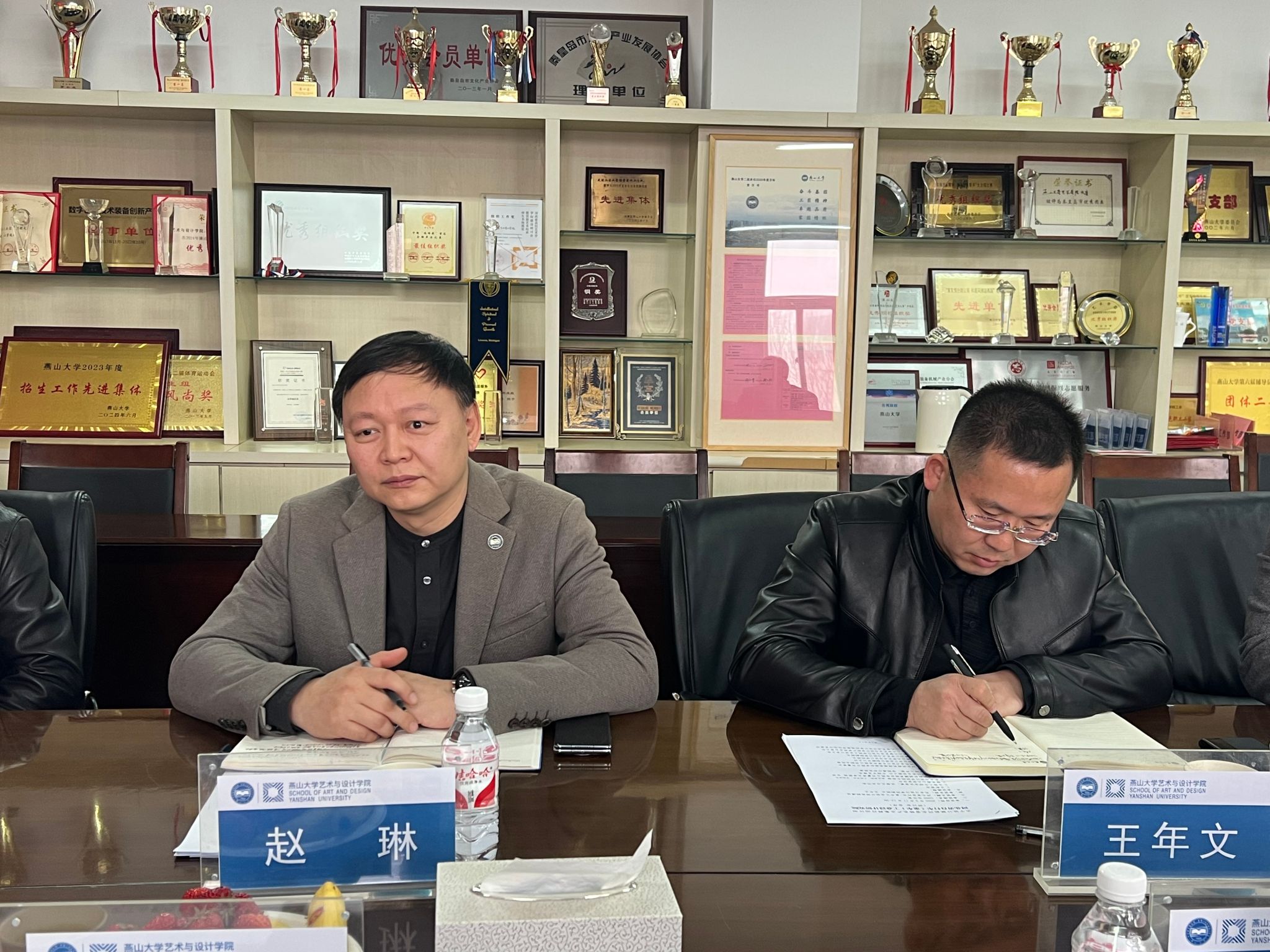 院长赵琳、副院长王年文及专业教师代表与河北省欧耐模具股份有限公司董事长李银铭、河北金力自行车零件有限公司副总经理景子毅、邢台市工业设计创新中心主任郝智博出席会议。