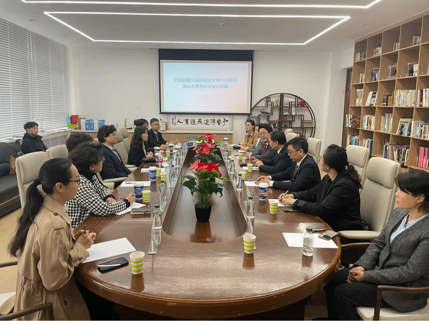 座谈会上,双方系统梳理了学科共建、国际科研协作等阶段性成果,重点探讨了“双导师制”博士联合培养方案及为期一年的全额奖学金研究生交换生计划。韩方高度赞誉学院在跨学科艺术疗愈领域的创新与探索,称其为深化合作奠定了坚实基础。代表团还参观了艺术疗愈实验室、对相关成果表示充分认可。