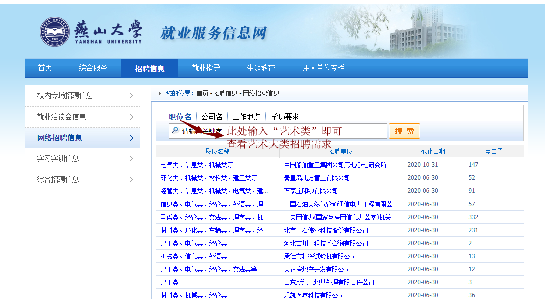 ③“2020届高校毕业生全国网络联合招聘——24365校园招聘服务”:由全国高等学校学生信息咨询与就业指导中心主办,教育部联合国内主流网络招聘平台,提供24小时365天的网上招聘服务。目前进驻的招聘平台有一览英才网、前程无忧、智联招聘、BOSS直聘、中华英才网、猎聘网、拉勾网、应届生求职网、大街网等,开辟校园招聘专区,免费提供优质服务。网址链接//www.ncss.cn。