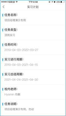 2)实习计划,点击后即可查看实习计划详情。