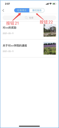 点击公告栏(按钮20)即可看到公告栏中的内容,包括检查情况(按钮21)与推优报告(按钮22)。
