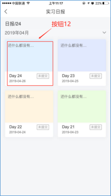 点击日报,周报,月报,即可看到每日每周每月的报告详情。点击任意详情(按钮12),可进行日报的编辑,编辑之后可以保存或者提交。(如忘记提交,编辑好内容后可以申请补交)